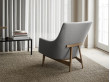 Fauteuil scandinave modèle A-Chair Wood Base 6540 de Jens Risom pour Fredericia. Conçue à l'origine par Jens Risom en 1961, la chaise A a l'expression gracieuse d'une chaise élégante et rembourrée dans un design intemporel, dotée d'un cadre en A à l'arrière pour un soutien accru et comme détail de signature. Les lignes incurvées du dossier en deux parties et du coussin d'assise lâche accentuent le confort et la douceur de cette chaise.