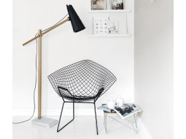 Elle est reliée à un pied en bois de chêne chaleureux et à une base en béton froid !