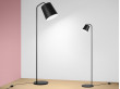 Lampadaire design disponible en noir ou blanc, dispensant une lumière douce grâce au diffuseur en acrylique opalin. L'abat-jour peut également être ouvert avec un réflecteur.