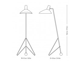 Lampadaire ou liseuse scandinave Tripod HM8. Edition neuve. Le lampadaire tripod reflète le minimalisme propre des maitres du design scandinave Peter Hvidt & Orla Mølgaard-Nielsen.