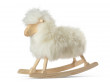 Mouton en pin, sculpté à la main par le sculpteur danois Povl Kjer et recouvert d'une peau d'agneau de Norvège. Chaque peau est différente et conserve sa teinte naturelle. Chaque mouton à bascule est donc unique.