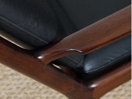 Paire de fauteuils scandinaves en acajou modele PJ 112 pour Poul Jeppesen, référencé dans le Furniture index du danish design museum sous le n° RP02694. Modèle conçu en 1951. Exemplaires produits dans les années 70.