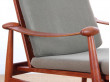 Paire de fauteuils scandinaves en teck modèle FD 133 de Finn Juhl pour France et Daverkosen en 1954. Première édition. Ressorts d'assise refaits à neuf. Référencée par le Design Museum Danmark sous le numéro : RP02532. Bibliographie : 40 years of Danish furniture design : the Copenhagen Cabinetmakers’ Guild exhibitions 1927-1966 ; Dansk møbelkunst gennem 40 aar : Københavns Snedkerlaugs møbeludstillinger 1927-1966 / Jalk, Grethe . - Tåstrup, 1987, Bd. 3, s. 313 .- ISBN: 8775117118 Structure en parfait etat. Coussins d'origines. Peuvent être changés sur demande. (+ 450€ / fauteuil) Prix indiqué pour la paire.