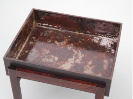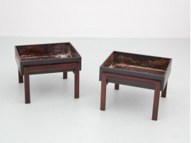 Paire de jardinieres scandinaves en palissandre de Rio. Bâti rectangulaire en palissandre massif, bacs à fleurs en zinc