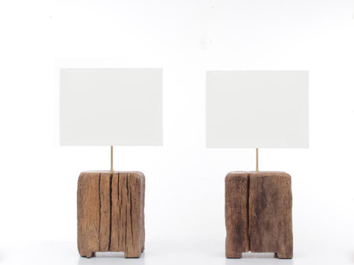 Paire de lampes à poser du sculpteur français Yvon. Chêne massif.