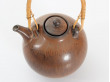 Petite théière en céramique, glaçure marron-rouge de Gunnar Nylund, anse en rotin.