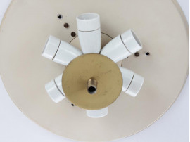 Plafonnier scandinave en cristal et laiton de Carl Fagerlund pour Orrefors. Fonctionne avec 6 ampoules standard E14.