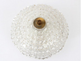 Plafonnier scandinave en verre et laiton de Carl Fagerlund pour Orrefors. Fonctionne avec 3 ampoules standard E27.