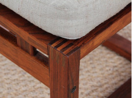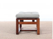 Pouf ou repose pied scandinave en palissandre de Rio massif de Kai Kristiansen. Coussin amovible. Revêtement d'origine, peut être refait avec le tissu ou cuir de votre de votre choix. Devis sur demande.