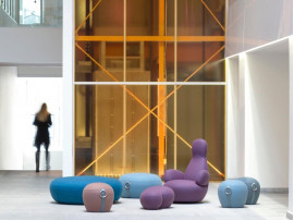 | Matière | Rembourrage en polyuréthane. Recouvert de tissu ou de cuir. Cuir selon la charte 6a. Anneau en acier inoxy- dable. Bande en polyester gris. Pieds plastique. |