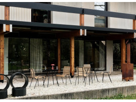 Faisant partie de la collection Royal Festival Hall de Robin Day, la table de terrasse RFH est fabriquée en acier noir revêtu par poudre, ce qui la rend extrêmement résistante à l'usure, à la décoloration et à l'eau. Reposant sur quatre pieds légèrement inclinés, la table présente un aspect à la fois doux et industriel.