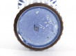 Céramique scandinave : vase blanc à rayures bleues de Mari Simmulson for Upsala Ekeby. Glacis brillant.