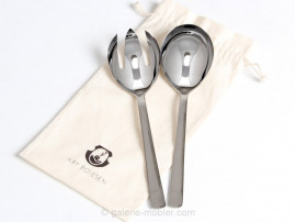 Service à salade « Grand Prix » comprenant une cuillère et une fourchette en acier poli.
