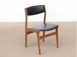 Suite de 4 chaises scandinaves en teck et skaï fabriquées par Dyrlund. Excellent confort d'assise et soutien du dos. Excellente condition d'origine.