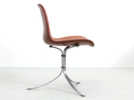 Suite de 4 chaises scandinaves modele PK-9 de Poul Kjaerholm for Kold Christensen. Edition originale. Revêtement en cuir cognac d'origine. Très belle patine. Pas de déchirures.