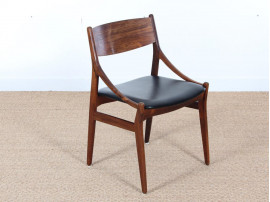 Suite de 6 chaises scandinave en palissandre de Rio de H. Vestervig Eriksen, vers 1960. Structure en palissandre de Rio massif. Assises en simolicuir noir d'origine.