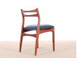Suite de 6 chaises scandinaves en teck attribuées à Erick Buck. Assises en simili cuir. Possibilité de refaire les assises avec le cuir ou tissu de votre choix. Devis sur demande.