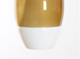 Suspension scandinave en verre fumé marron et opale. Modèle Rota de Jo Hammerborg. Fonctionne avec des ampoules classiques E27.