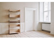 Etagères disponibles en frêne naturel ou frêne laqué noir.