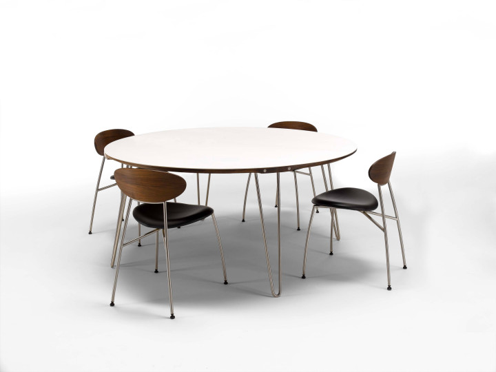 GM 6600 est une élégante série de tables à manger de Nissen & Gehl entièrement réalisée en bois massif ou en combinaison parfaite avec du Corian blanc. L'articulation caractéristique entre les pieds de la table et le plateau donne à la table un aspect distinctif sans compromettre sa simplicité d'expression.