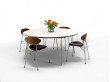 GM 6600 est une élégante série de tables à manger de Nissen & Gehl entièrement réalisée en bois massif ou en combinaison parfaite avec du Corian blanc. L'articulation caractéristique entre les pieds de la table et le plateau donne à la table un aspect distinctif sans compromettre sa simplicité d'expression.