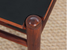 Table basse scandinave en palissandre de rio ed Ole Wanscher. Plateau reversible palissandre / mélaminé noir. Référencée par le Design Museum Danmark sous le numéro : RP02700