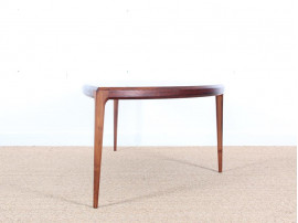 Table basse scandinave en palissandre de Rio de Johannes. Modèle rare en forme de demi lune. Très bel état.