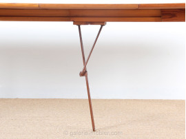 Table de repas scandinave en teck pouvant accueillir 4 à 12 personnes.
