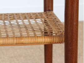 Table d'appoint scandinave ou bout de canapé en palissandre de Rio avec porte revue en cannage.