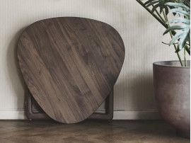 Table d'appoint scandinave pliante modèle Drop Leaf HM5 en noyer. Edition neuve. Produit initialement par France & Daverkosen en 1956 sous le nom 18/57 la table Drop Leaf de Peter Hvidt & Orla Mølgaard-Nielsen est désormais remise en production par And Tradition sous le nom de Drop Leaf HM5.