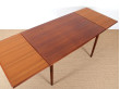 Table de repas scandinave en teck à deux allonges hollandaises. Pour 4 à 6 personnes. Petites dimensions. Idéales pour une cuisine ou table de travail.