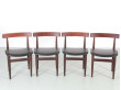Ensemble de 4 chaises et table à rallonge papillon en palissandre de Rio de Hans Olsen pour Frem Rojle en 1964. Assises refaites à neuf et recouvertes de simili cuir noir. Référencée par le Design Museum Danmark sous le numéro : RP03656