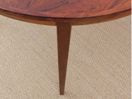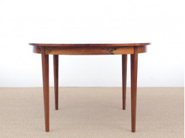 Table de repas scandinave ronde en palissandre de Rio à 1 rallonge 6/6 pers.