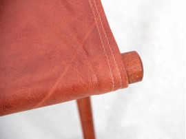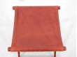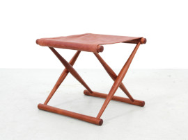 Tabouret pliant en teck et cuir. travail danois des années 60. Cuir d'origine.