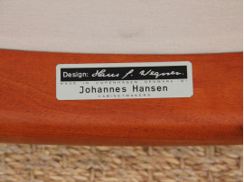 Fauteuil de bureau scandinave en acajou massif de Hans Wegner. Edition Johannes Hansen, vers 1970. Assise refaite à neuf en cuir naturel pleine fleur Walnut de Sørensen. Le cuir pleine fleur est un cuir non corrigé, et peut laisser apparaitre les défauts naturels de la peau tels que cicatrices, boutons etc.